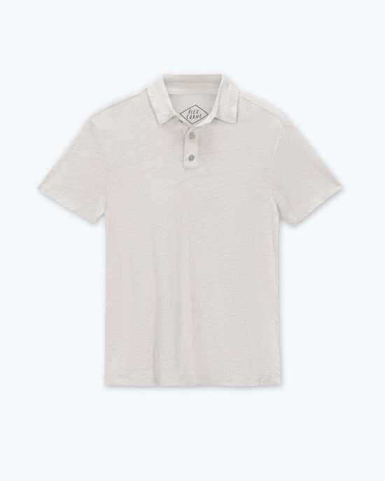 A natural linen short sleeve polo made with sustainably-grown French linen, coconut buttons, and washed with biodegradable softeners.
