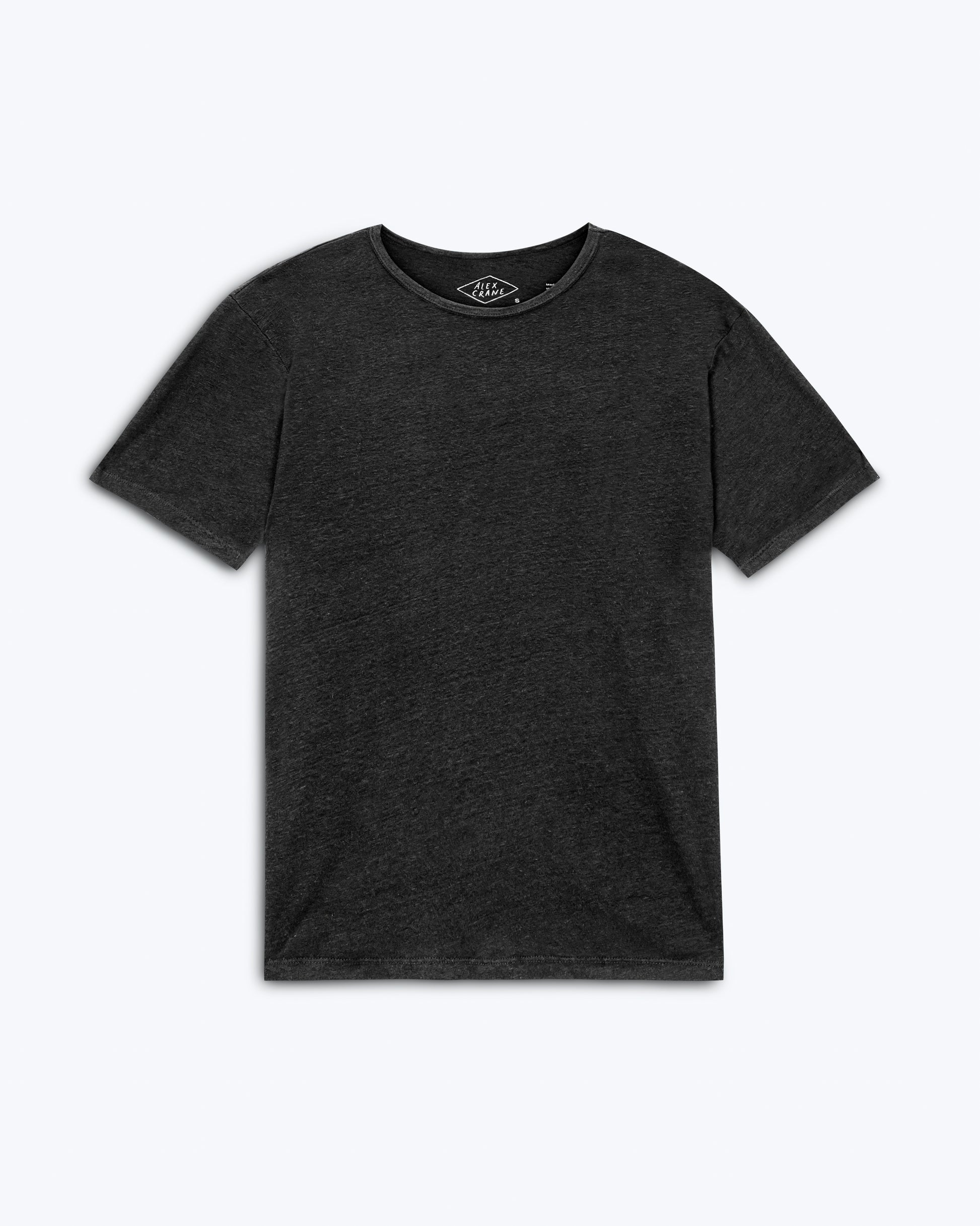 A black linen t-shirt made with sustainably grown French linen, knit in Portugal and washed with biodegradable softeners.