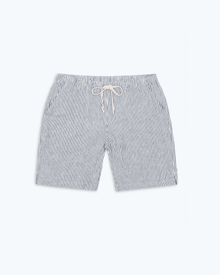 A yarn-dyed striped drawstring short made with sustainably-grown French linen and washed with biodegradable softeners.