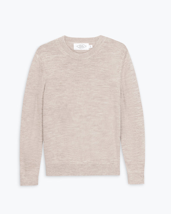 A natural crewneck sweater knit with heathered yarns in 100% merino wool.
