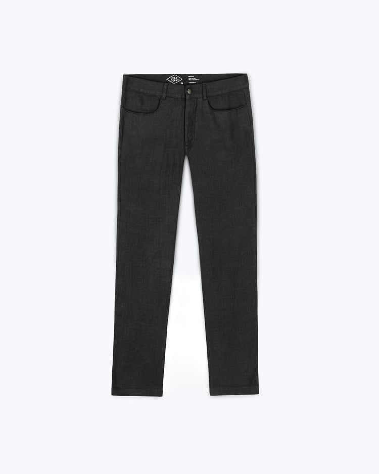 Black linen pants made with sustainably-grown French linen and washed with biodegradable softeners.