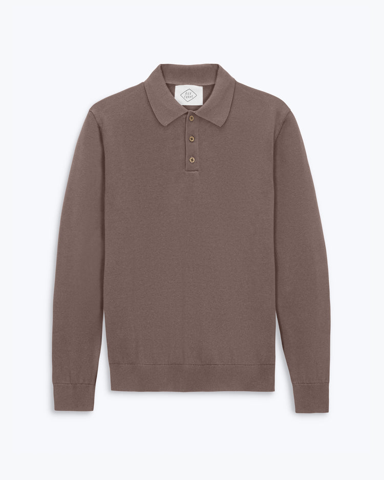 A chocolate brown polo made with 100% organic cotton and washed with biodegradable softeners.