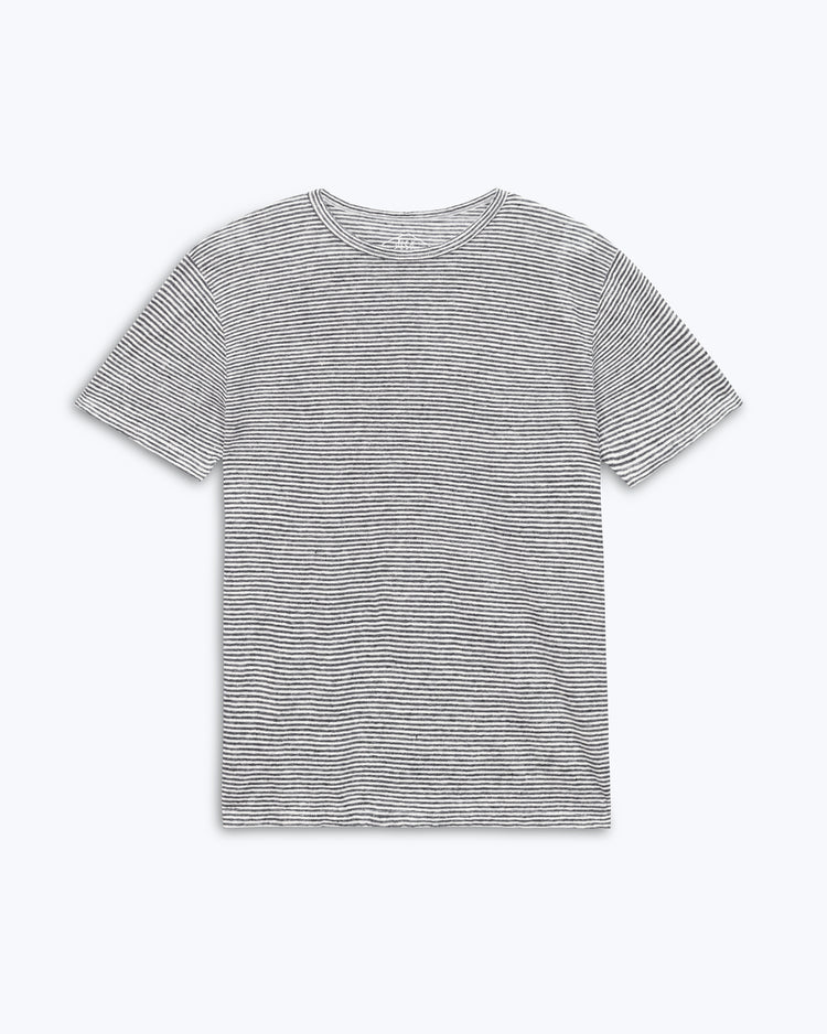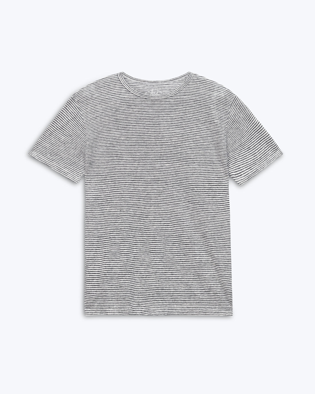 A yarn-dye striped linen t-shirt made with sustainably grown French linen, knit in Portugal and washed with biodegradable softeners.