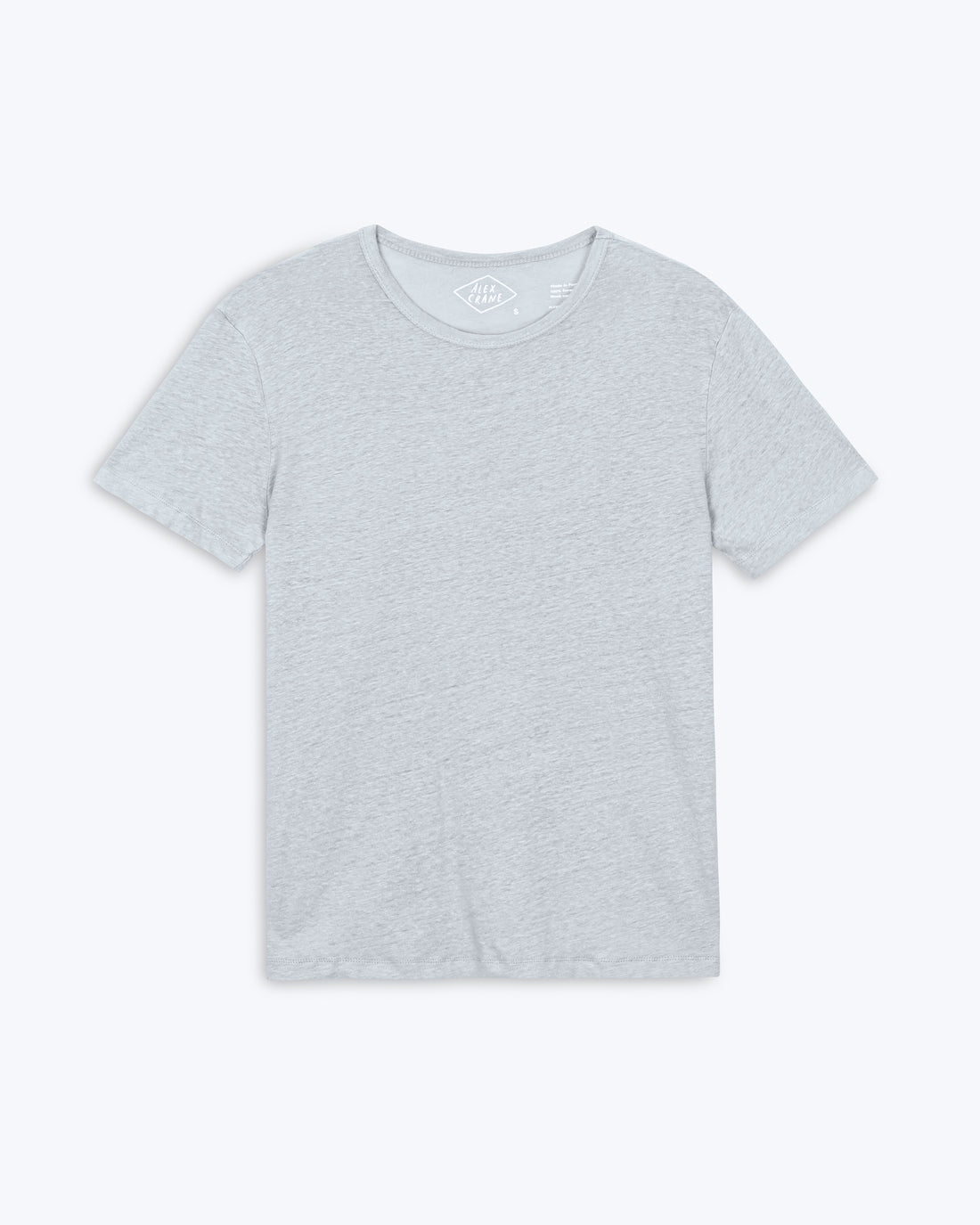 A blue-grey linen t-shirt made with sustainably-grown French linen, knit in Portugal and washed with biodegradable softeners.