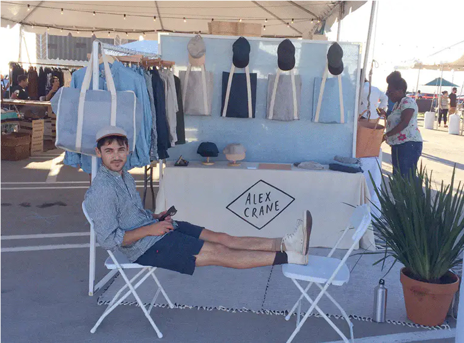 But we’d say Alex Crane started on a sand dune. Alex was listening to the waves, drawing, and sketched a diamond around his name. We call that the beginning. Or maybe it started much earlier, like when he inherited a sewing machine from his grandma. Or maybe in Bolinas. Or at the Rhode Island School of Design. Or maybe at Jack Spade.