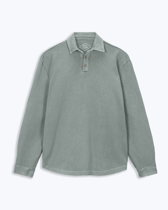 Caza Slubbly Organic Cotton Long Sleeve Polo / Faded Green