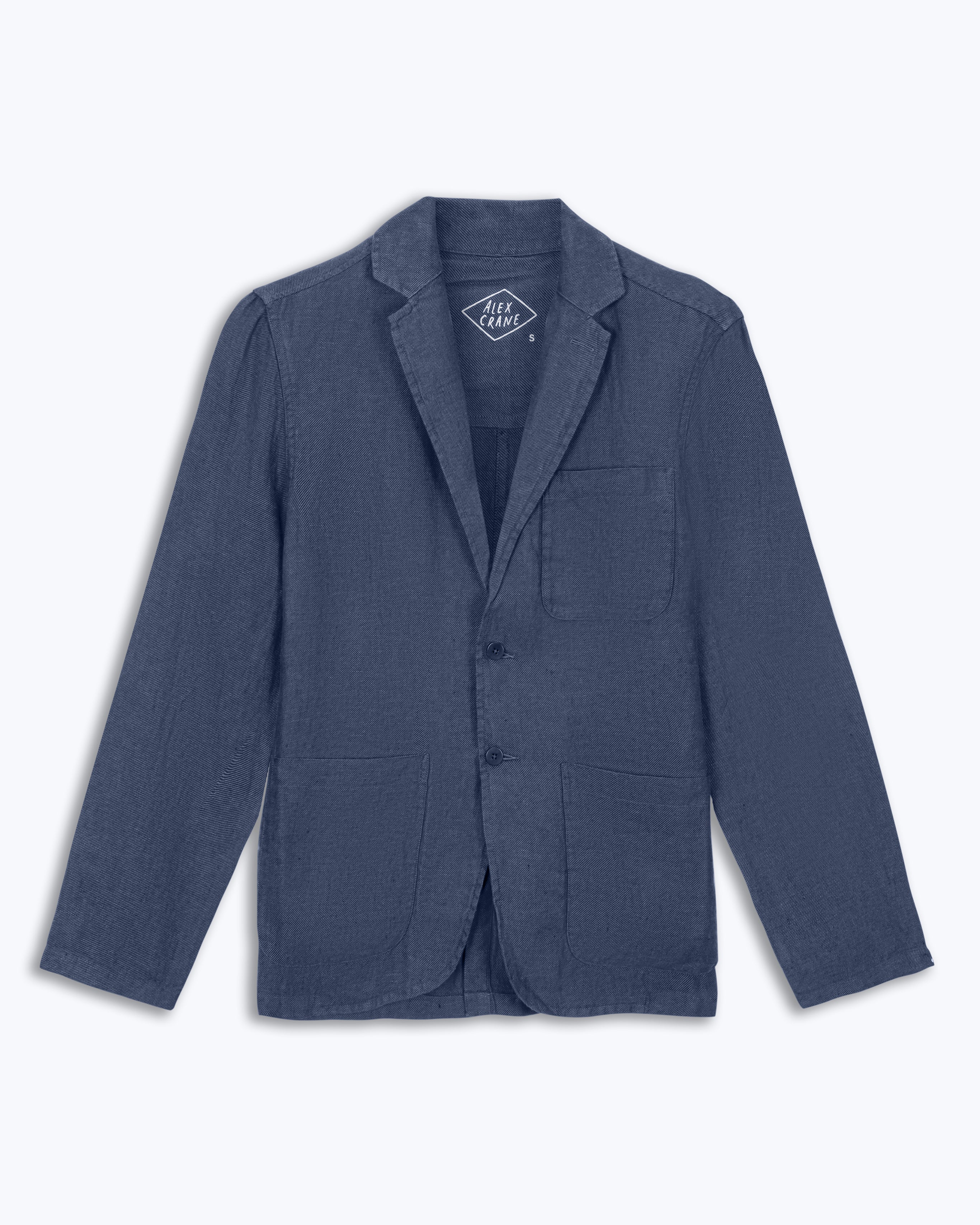 An unstructured twill linen blazer made with yarn-dyed French flax and washed with biodegradable softeners. Features a notched lapel, boutonniere buttonhole, back vent and four pockets. Pair with the Alta Trousers to complete the suit.